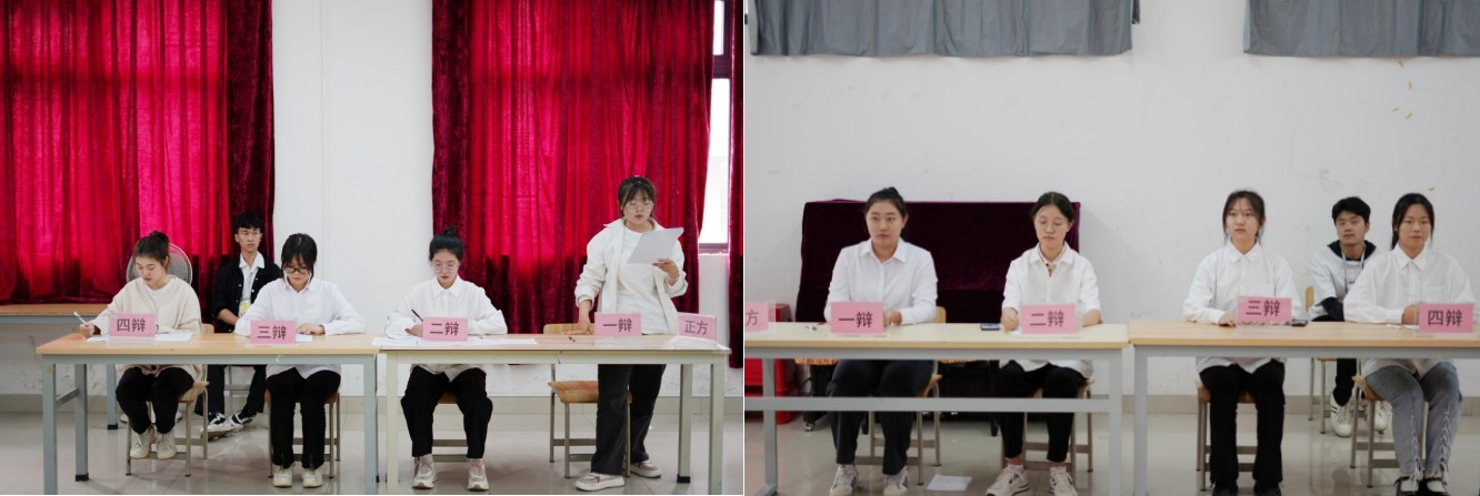 此次比赛分为立论质询、攻辩、 攻辩小结、自由辩论、总结陈词五个环节,共4组八支代表队伍参赛。