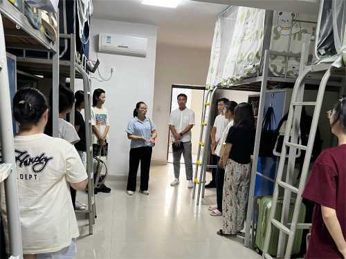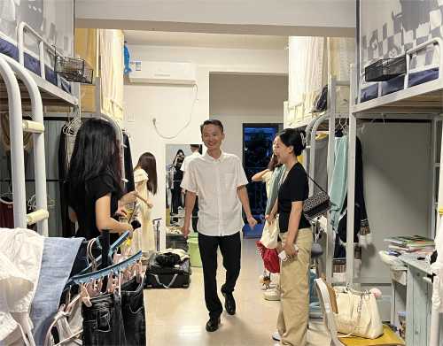 2023年9月28日,在中秋国庆双节来临之际,学院党总支书记、院长熊秀峰、党总支副书记邓欢、副院长李水亮、李谦,及学院学工办成员、相关辅导员老师走进学生宿舍慰问学生,与同学们共话家常,喜庆双节,向同学们送上节日的问候与祝福。