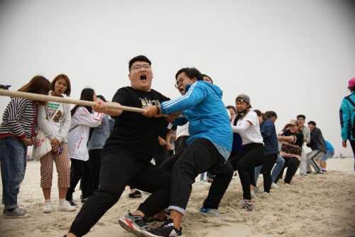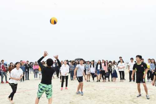 沙滩运动会共有6个项目,其中最备受瞩目的当属沙雕了。每个班级制作的非常壮观,引得许多游人闻声而来。