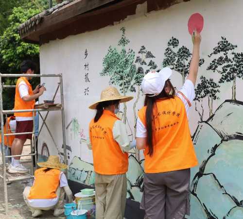 接着志愿者们开展了环境保护活动与墙绘活动,将自身的专业知识与本领运用到为人民服务之中去,通过墙体绘画装点村容村貌,用色彩勾勒出美丽乡村的完美画卷。墙绘的打造,不仅为美丽乡村增添了一道靓丽的风景线,还促进了当地旅游业的发展,为美丽乡村建设注入色彩与活力。