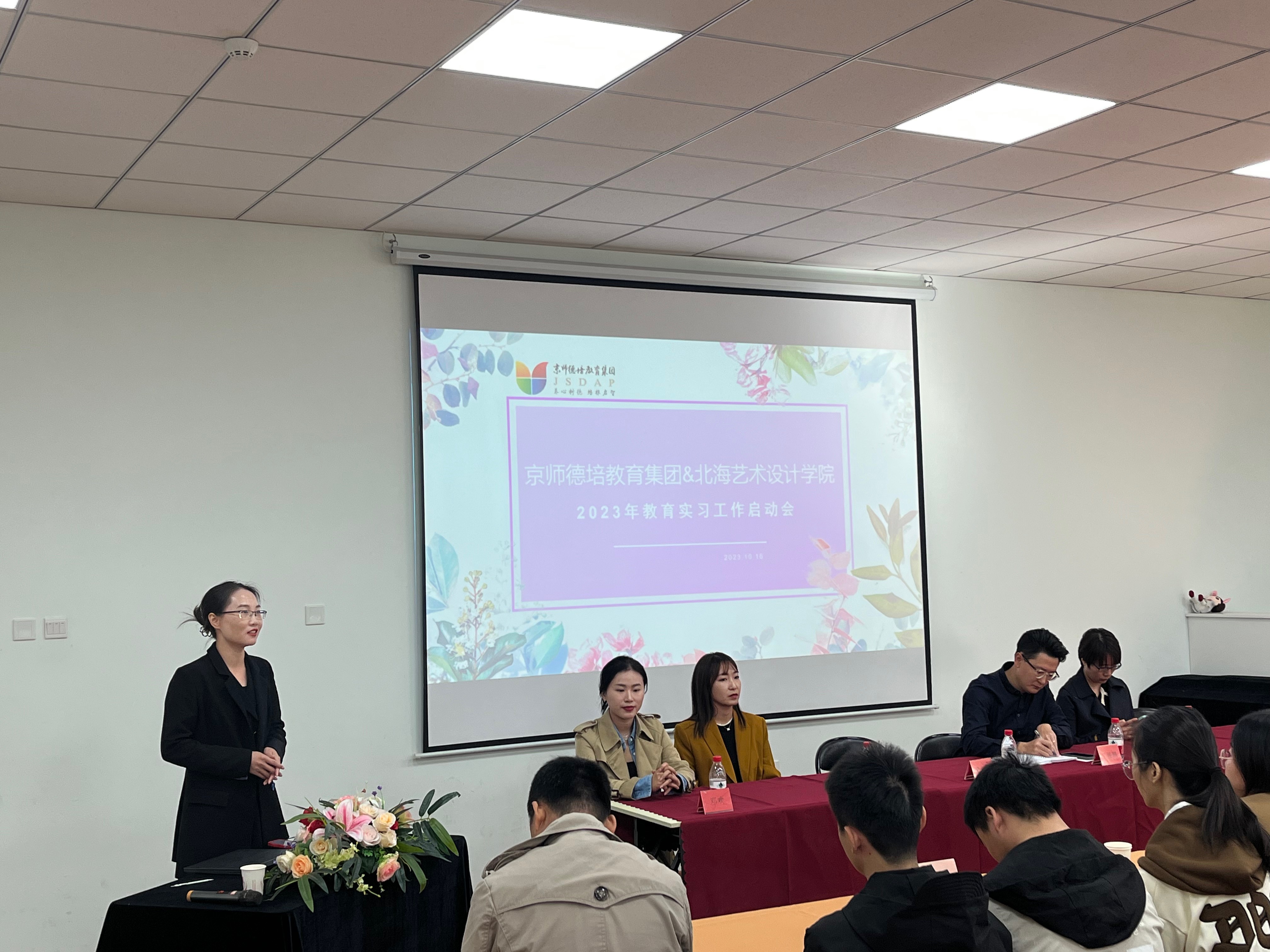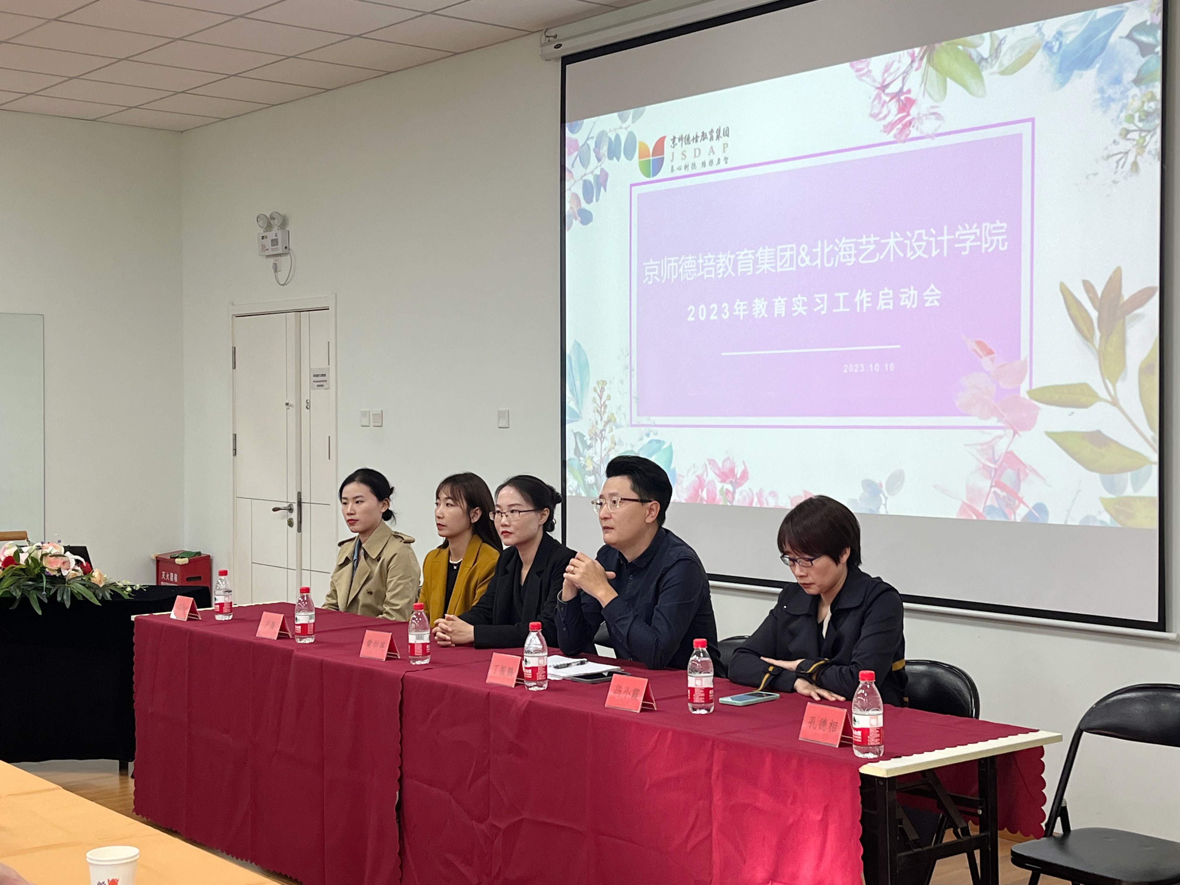 出席本次会议的领导和老师分别是人文教育学院党总支副书记邓欢、北京实践基地办公室副主任严腾、学前教育教研室主任蒙剑英、京师德培教育集团总园长丁振鹏、实验室副主任冯小霞、2020级辅导员孔德相、京师德培教育集团各园长,以及2024届学前教育专业在该集团集中实习的39位同学。本次会议由京师德培教育集团人事负责人马艾萍主持。