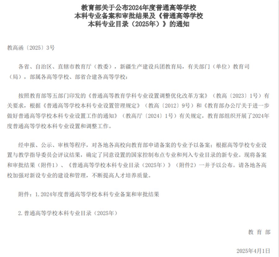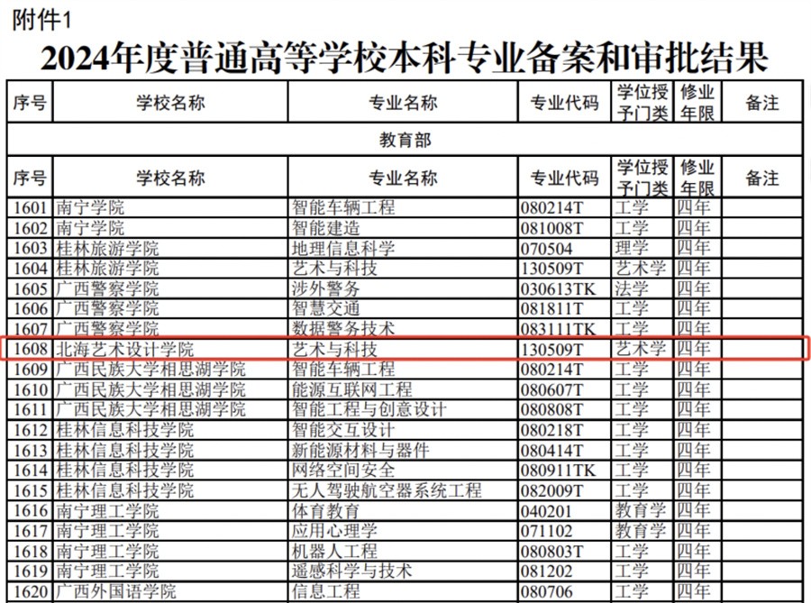 近日,教育部印发了关于公布2024年度普通高等学校本科专业备案和审批结果及《普通高等学校本科专业目录(2025年)》的通知(教高函〔2025〕3号),我校申报新增的“艺术与科技”本科专业获准设置。