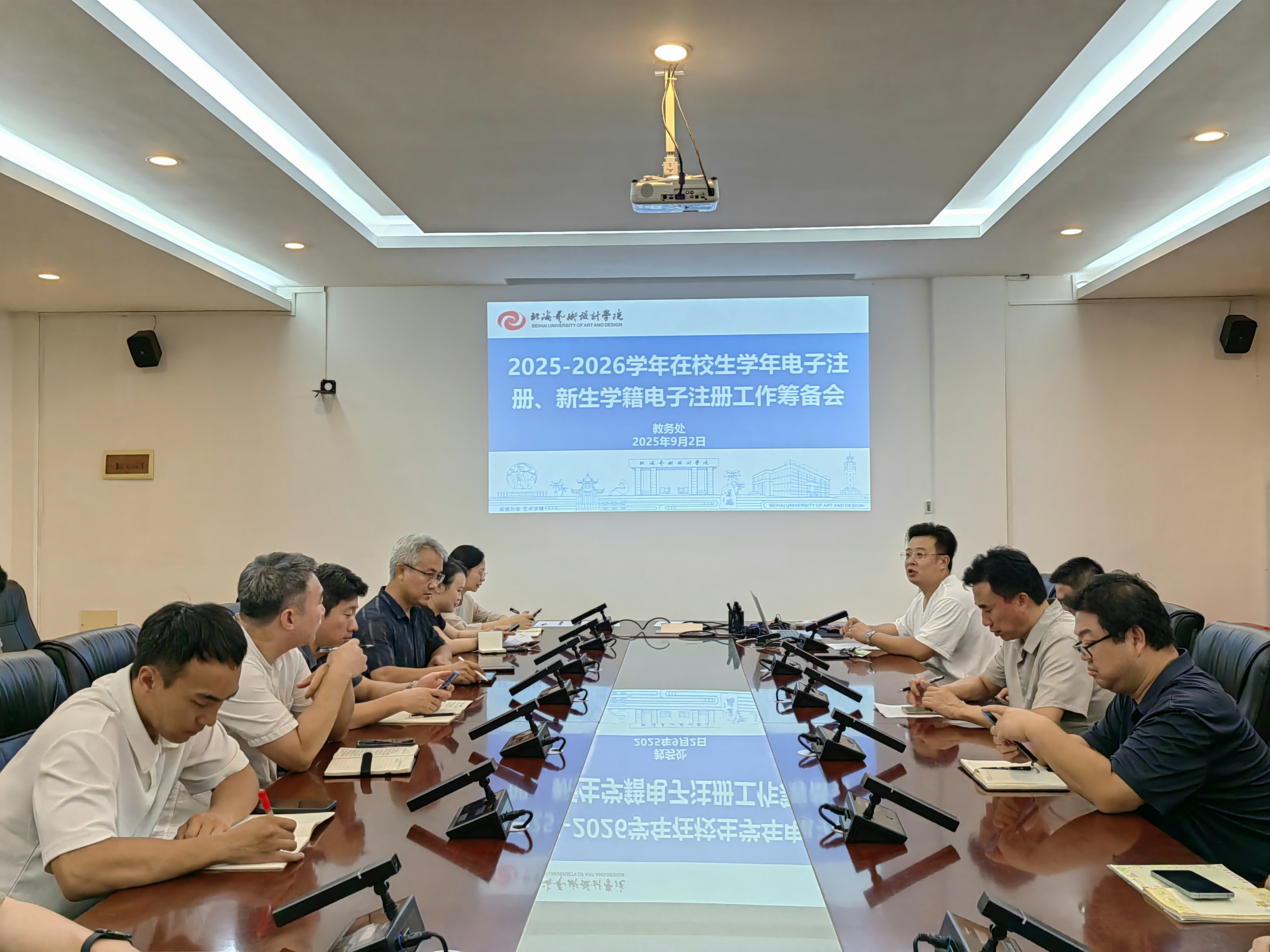 2025年9月2日,我校在行政楼212召开了学籍管理及2025-2026学年在校生学年电子注册、新生学籍电子注册工作会议。陶立阳副校长、党委宣传部、教务处、学部(处)、招生就业处等职能部门负责人、各二级学院主管教学副院长、学籍管理相关工作人员参加会议。会议由教务处武鹏程处长主持。