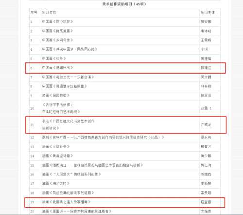 根据广西艺术基金日常管理机构发布的《广西艺术基金2025年度一般资助项目名单通知》,我校美术学院的陈建江、程宣睿老师以及书法学院的江威龙老师,成功获得3项广西艺术基金2025年度一般资助项目中的美术创作资助项目。这3个项目的获批,充分证明了我校师生在艺术领域的不懈奋斗与创新实践。