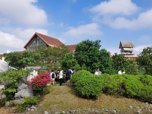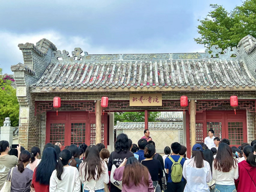 本次揭牌仪式结束后,北艺书院师生参观、游览了北艺书院,在精巧别致、古色古香的园林建筑里,赏花草树木,观鱼虫嬉闹,浸书墨之香,品文化气息。(陈真考/摄)