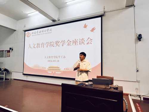 2024年5月10日上午,在西校区伦理楼107召开人文教育学院诚信教育大会兼奖学金座谈会。学院学工办主任谢伟出席大会并讲话。大会由学工办俸莲云老师主持。