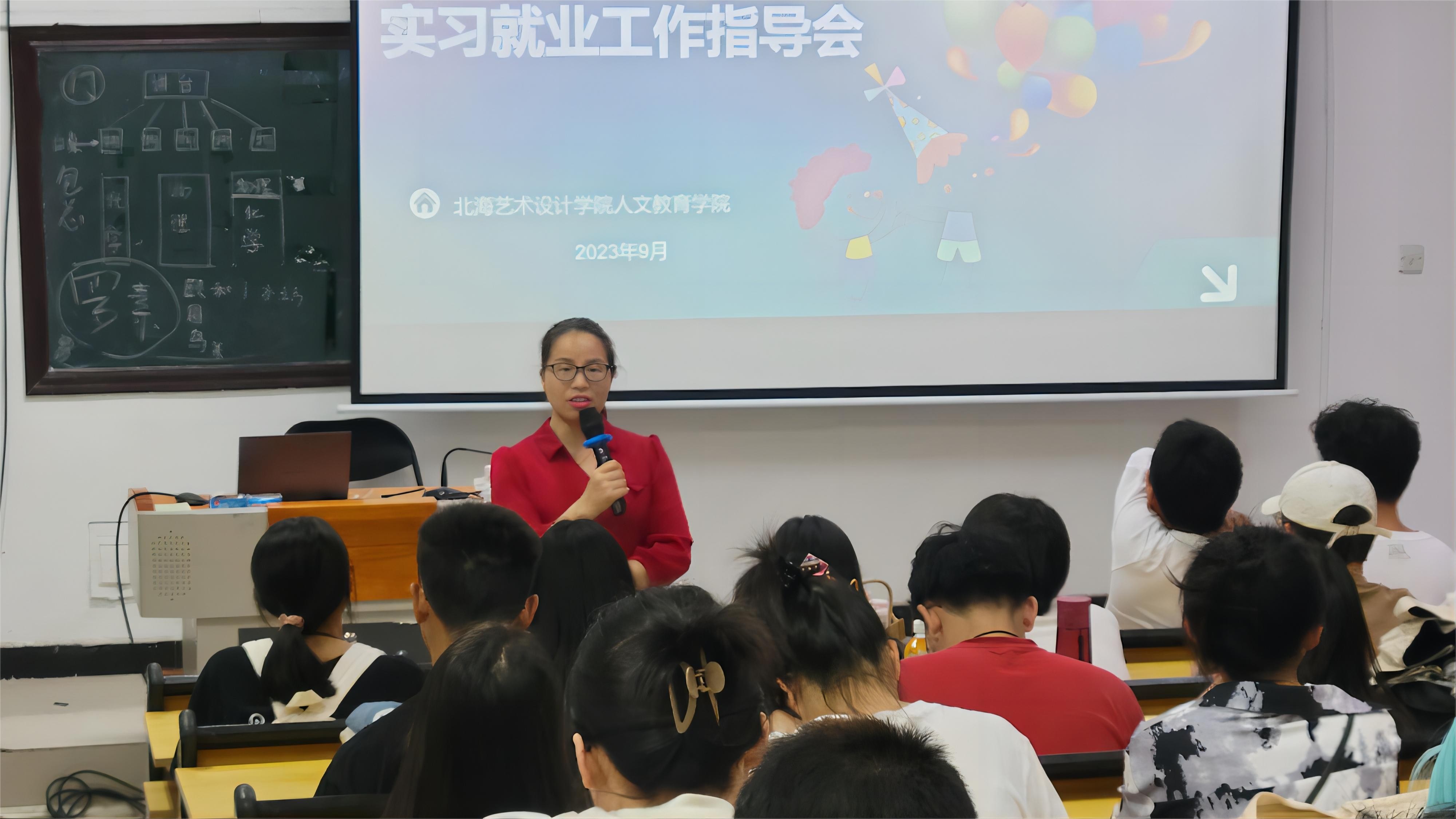 为切实做好我院2024届本科生论文指导、毕业实习就业工作调动学生毕业论文写作、实习与就业的积极性,9月14日,我院召开2024届毕业论文、实习就业工作动员大。北海艺术设计学院总督学王斌、人文教育学院院长熊秀峰、副院长梁镨文出席此次动员会,人文教育学院2024届全体毕业生参加本次动员大会。会议由学院梁镨文副院长主持。