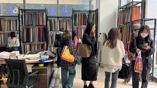 首先由毕业设计指导老师带队前往鑫海商贸城、云裳服饰广场等地开展学习调研,接下来指导学生在园区内进行毕业设计面料的选购、定制。在过程中注意引导学生结合自己服装毕业设计风格进行考察与记录,将所想落实,所见化真,鼓励学生将专业知识与创新实践相结合。