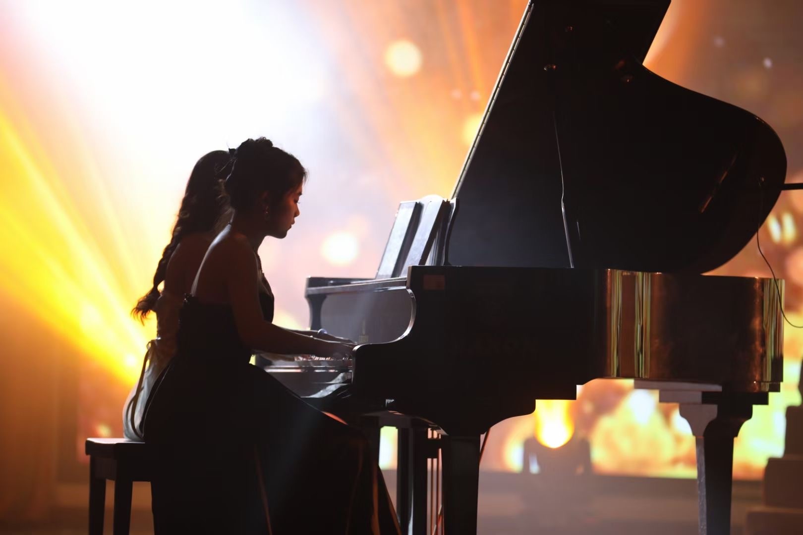 梅紫怡、杜林繁钢琴四手联弹《贝加尔湖畔》《彩云追月》