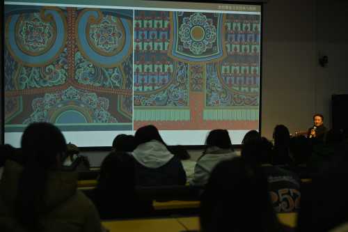 讲座过程中,刘元风教授现场介绍了经过多年前期铺垫后成立的敦煌服饰文化研究暨创新设计中心。敦煌服饰文化研究暨创新设计中心从学术研究、创新设计以及人才培养三个方面做出了众多重要工作。该中心创立了国家艺术基金“敦煌服饰创新设计人才培养项目”,做出了国家社科基金项目“敦煌历代服饰文化研究”和国家社科基金艺术重大项目“中华民族服饰文化研究”以及第六子课题“服饰文化传承创新研究”。在创立各个调研项目的同时,该中心不忘人才培养,加强创新发展的同时传播深层的中华民族优秀传统文化,让国家拥有优秀人才,让世界看见中华瑰宝。