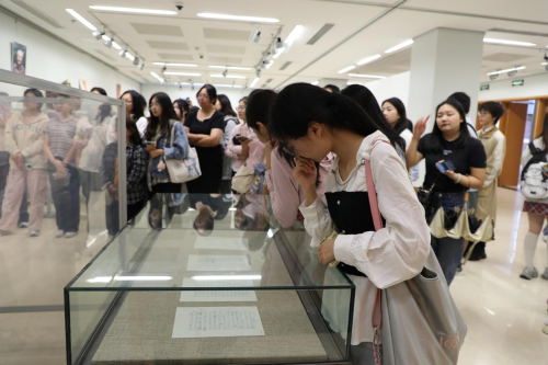 首先,学生们参观了长设现代文学展厅,这里陈列着众多现代文学大家的著作、手稿、译本、日记、信札、藏书等文学档案资料。在参观过程中,同学们悉心感悟,全身心投入这场立体的现代文学课堂。透过珍贵的文物史料、深刻体悟新旧时代过渡时期作家的责任担当,置身于书影图文、手稿原件等珍贵的文学史文物之中,师生们仿佛触摸到了活生生的文学史。