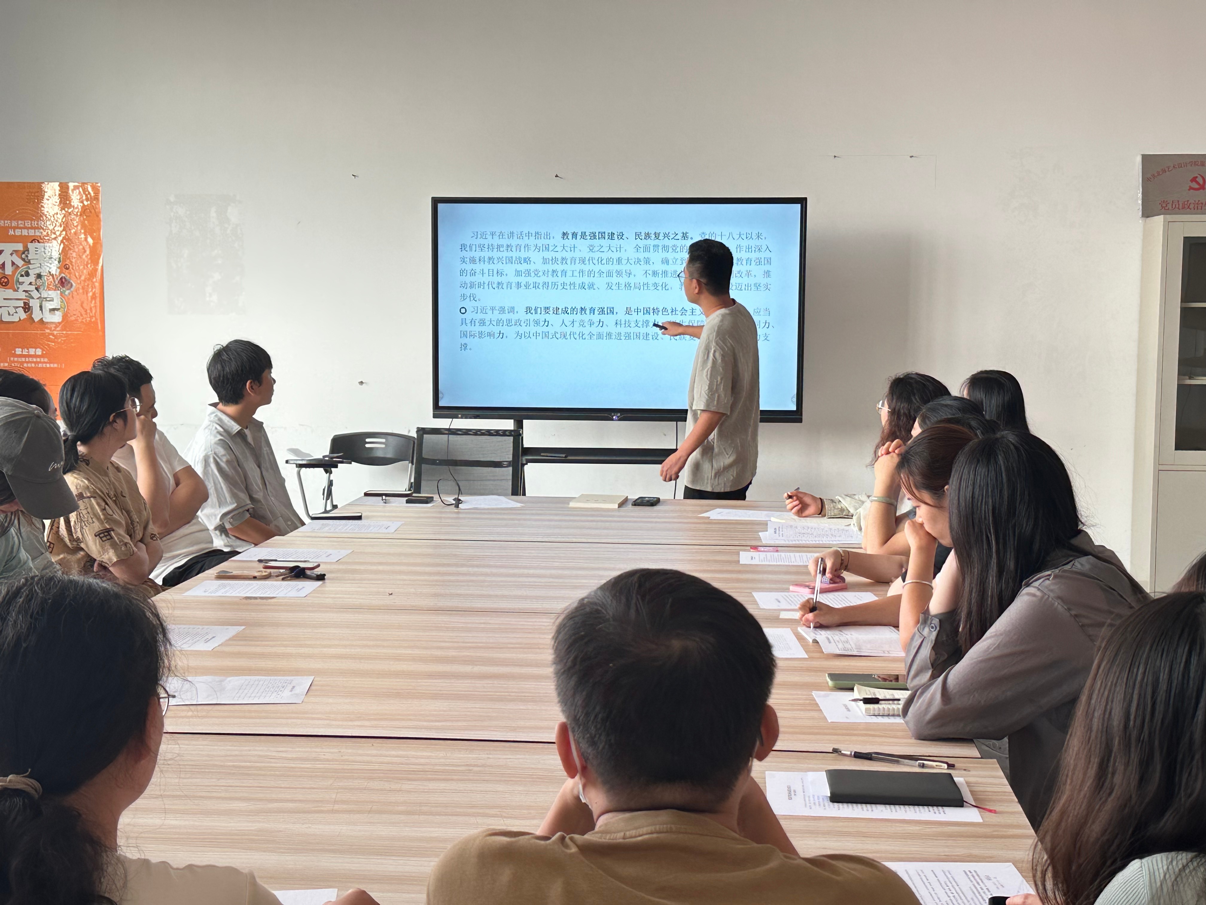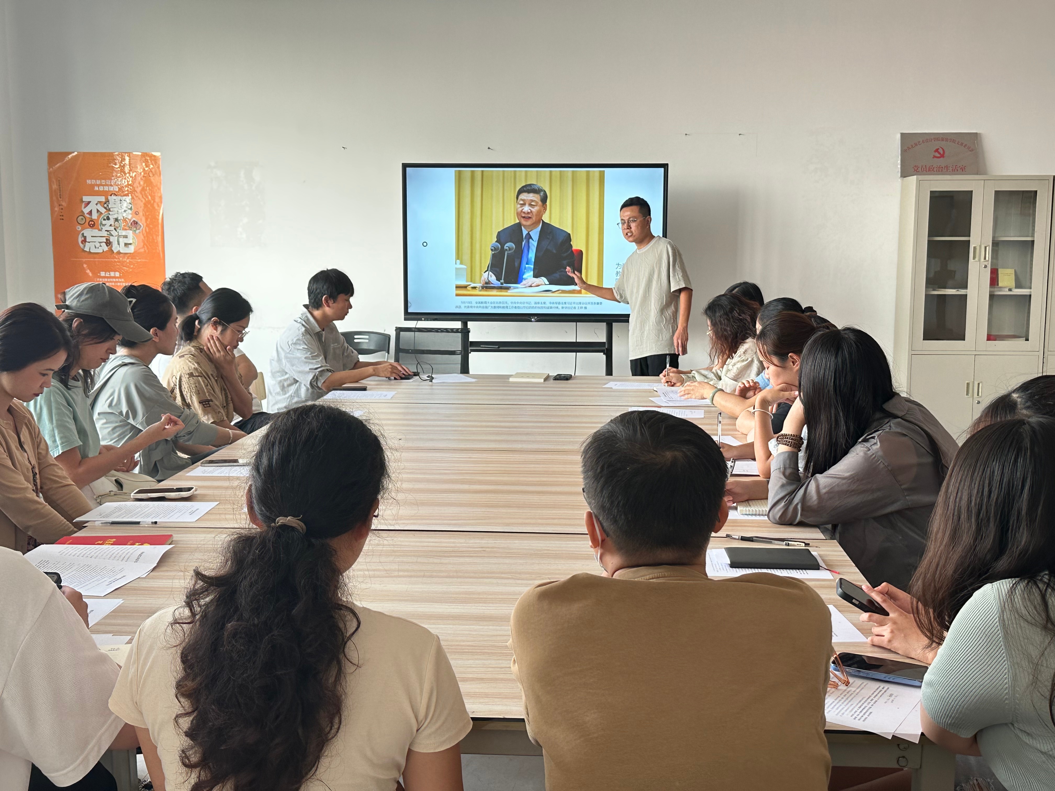 2024101417时,服装学院在服装楼 404 召开学习习近平总书记重要讲话和全国教育大会精神集中学习活动,全院教职工参加了此次会议,会议由服装学院党支部书记曹永攀主持,吴柔洁负责记录。