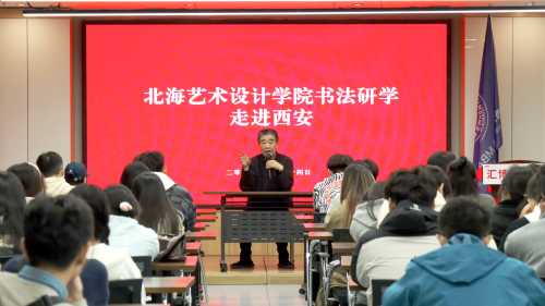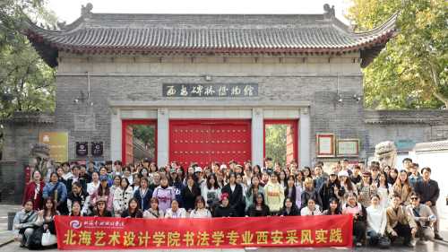 2024年10月22-28日,北海艺术设计学院书法学院书法学专业2023级全体学生赴陕西省西安市开展我院《专业采风》课程的实践教学活动。本次考察由书法学院副院长苏乃从、书记喻广林,以及专业教师胡慧捷、常锦文、张天赋组织带领,历时6天。研学过程中,同学们寻访古迹、参观博物馆、聆听名家讲座,全面领略中国历史文化的源远流长与中国传统艺术的博大精深。