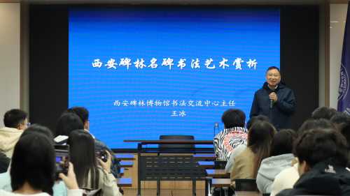 随后的几日研学中,同学们在西安交通大学参加多场精彩的书法讲座,并与西安诸多书法前辈进行书艺交流。讲座邀请西安市书法家协会第五届副主席李和生先生、西安碑林博物馆书法交流中心主任王冰先生等多位书法名家,同学们在讲座中获益匪浅。同学们在对西安碑林博物馆的考察中,亲身观摩在书法史上负有盛名的碑刻拓片,比如秦代李斯的篆书《峄山碑》、汉合阳令《曹全碑》、欧阳通楷书《道因法师碑》等。同学们一边欣赏,一边学习,一边记录,零距离感受书法名碑的艺术魅力。