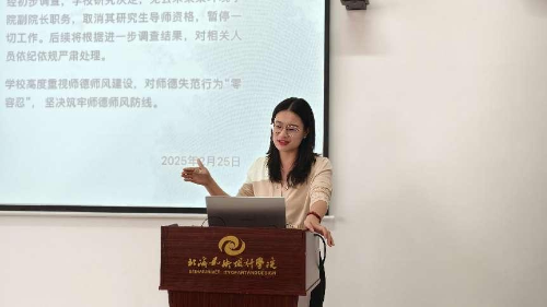 此次师德师风专题学习会议的顺利开展,不仅增强了教师们对师德师风建设的认识和理解,也进一步激发了他们投身教育事业的热情和信心。我院将继续加强师德师风建设,努力打造一支政治素质过硬、业务能力精湛、师德高尚、有责任心的教师队伍,为培养更多优秀人才贡献力量。(曾心怡/摄)