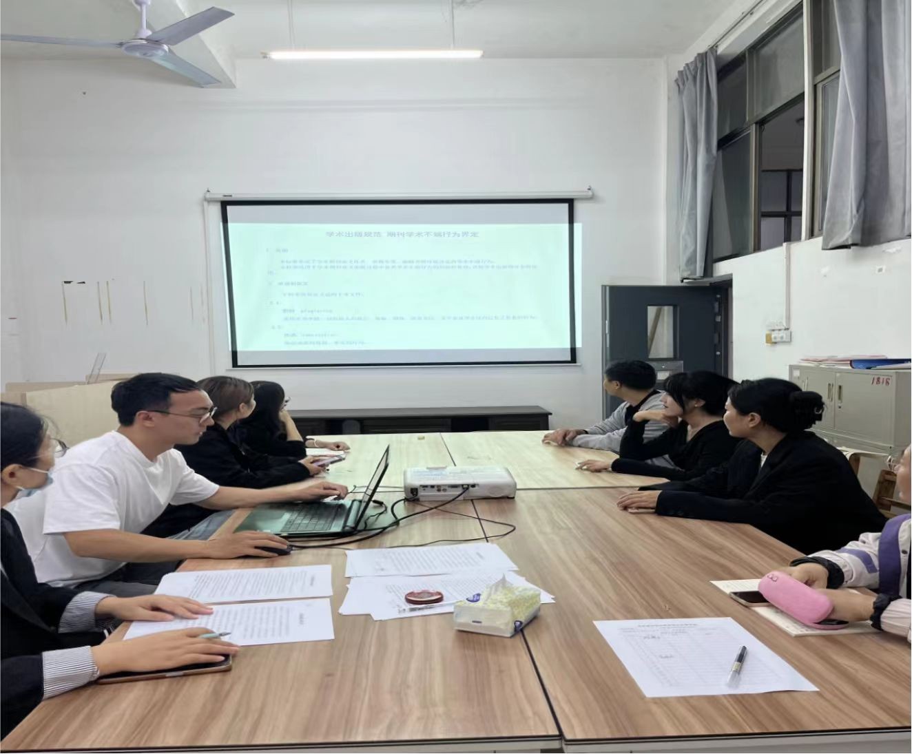会议伊始,与会教师集体学习了《高等学校预防与处理学术不端行为办法》(教育部令第40号)以及《哲学社会科学科研诚信建设实施办法》(社科办字201910号),明确在科研活动中需要遵循的相关法律法规,重点解读科研诚信中的违法违规问题。覃传茵副院长强调科研诚信是学术活动的根本,是不可逾越的红线,全院教师必须内化相关法律法规精神,将严谨求实的学风贯穿于科研活动的始终。