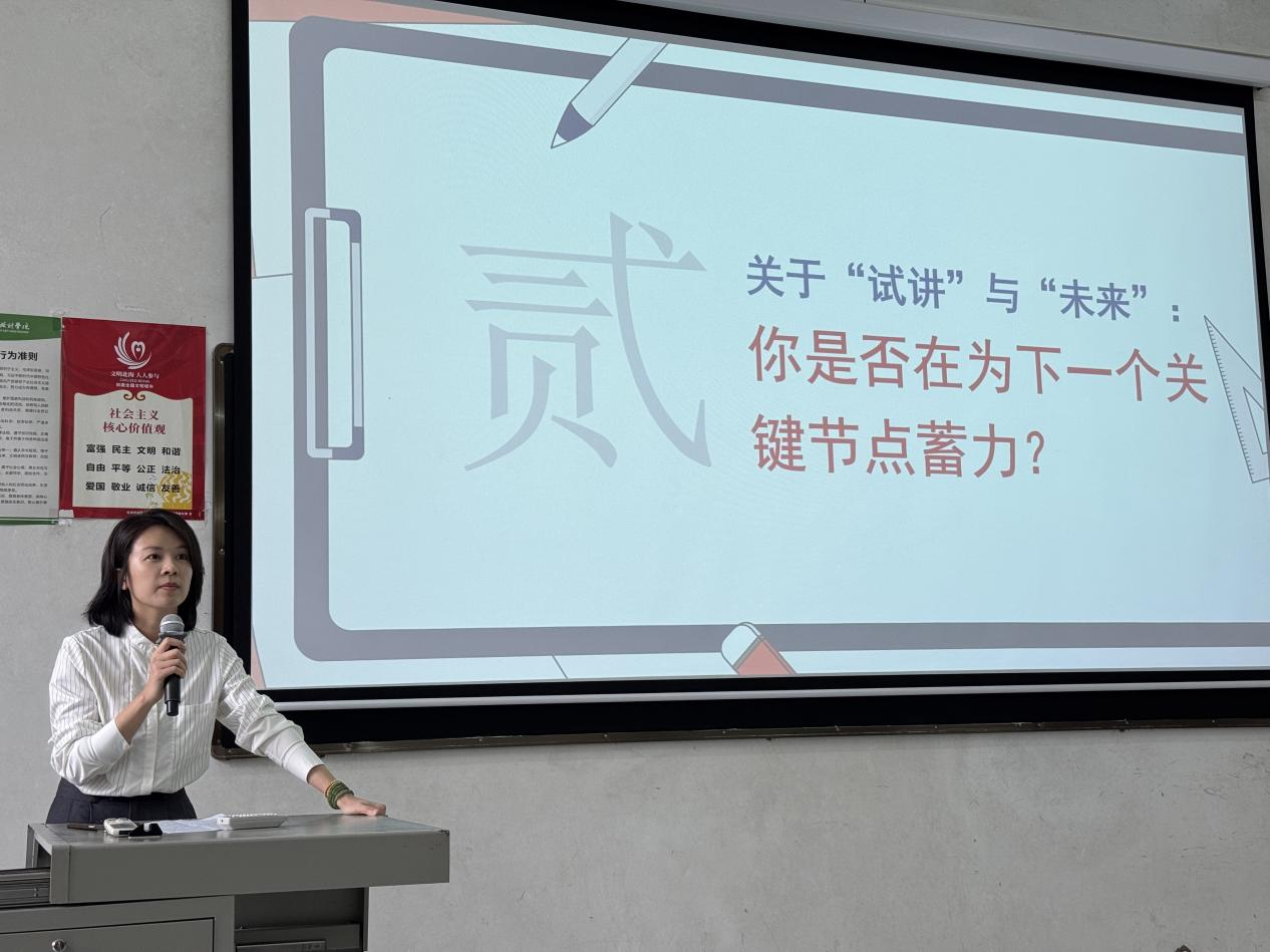 校内试讲是此次见习的核心实践环节,为同学们提供了宝贵的实战机会。参加试讲的每位学生精心准备课件、反复打磨教案,将所学的教学方法运用到课堂中试讲结束后,平阳学校的指导老师逐一进行点评,教学语言、课堂节奏、师生互动等方面提出改进建议,帮助同学们补齐短板,切实提升教学实操能力。