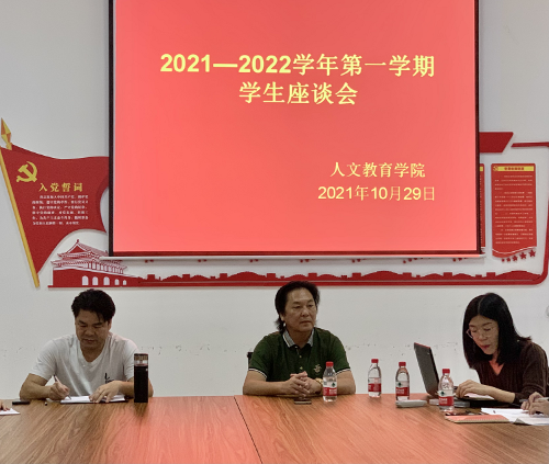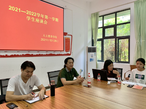 为全面了解我院学生对学院教育教学、管理服务等方面的意见和建议,进一步增强我院教学质量和管理服务工作的针对性和实效性,提高广大学生的学习热情,我院于2021年10月29日下午在行政楼111会议室召开了2021-2022学年第一学期学生座谈会。此次会议由我院教务办主任马芬主持,参加会议的有人文教育学院副院长李水亮、汉语言文学教研室主任陈敢、哲学教研室主任潘家猛、学工办主任谢伟以及学院11个教学班的20名学生代表。