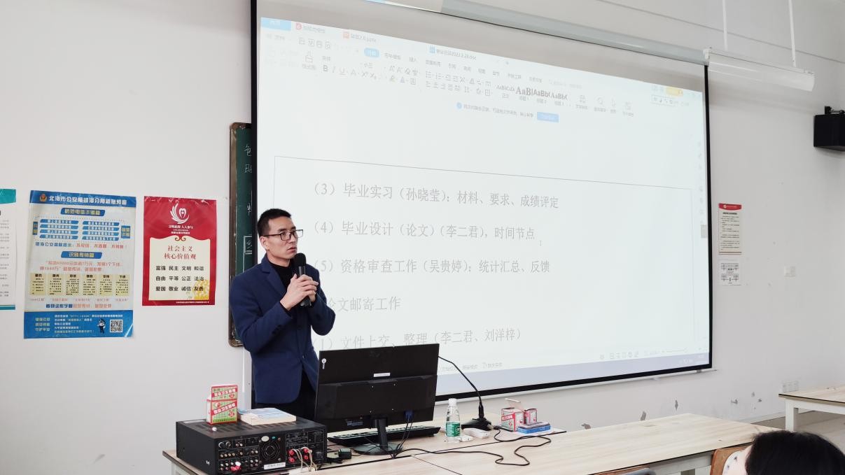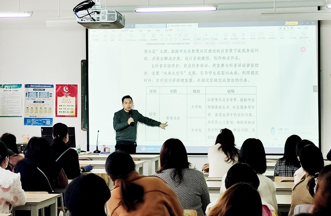 议程四由建环学院分团委书记雷勇主持,议程内容主要为关于举办第九届全国青年科普创新实验作品大赛广西赛区的通知,初赛要求:结合自身情况,预留好递交时间,请各任课老师们于2月17日填写好《第九届全国青年科普创新实验作品大赛广西赛区信息表》发送到指定邮箱。(雷勇、陈宣辰/摄)