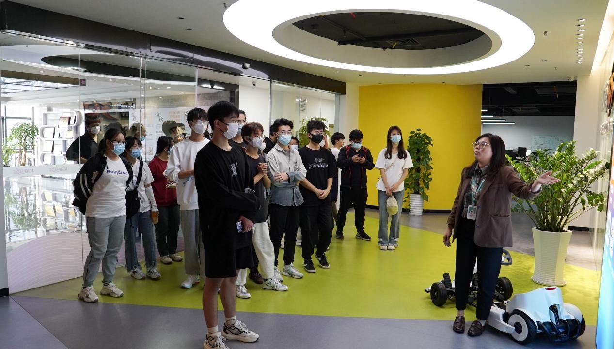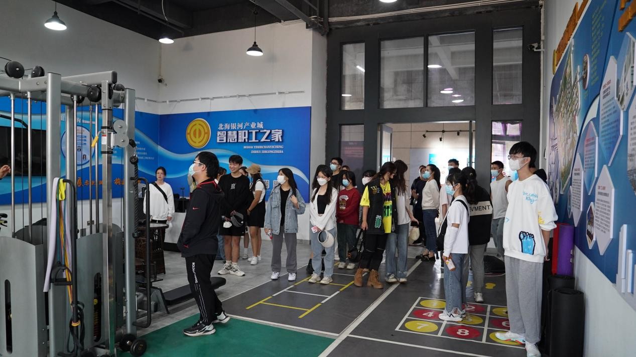 园区负责人梁张月带领师生进行参观,通过讲解介绍园区的企业文化、办公环境、就业政策、园区配套等情况,并实地参观北海365、卓美文化、纽博生物等部分企业。