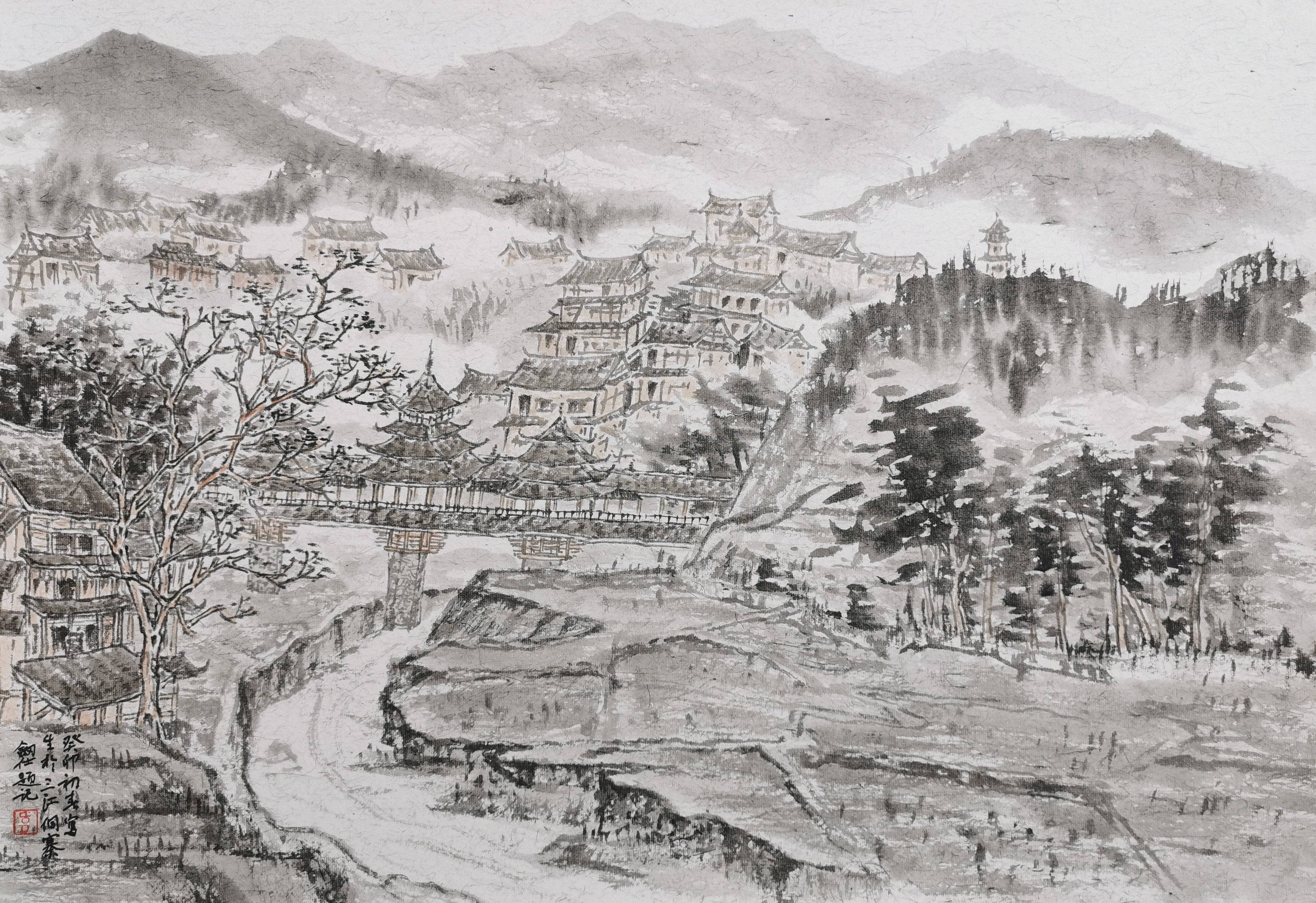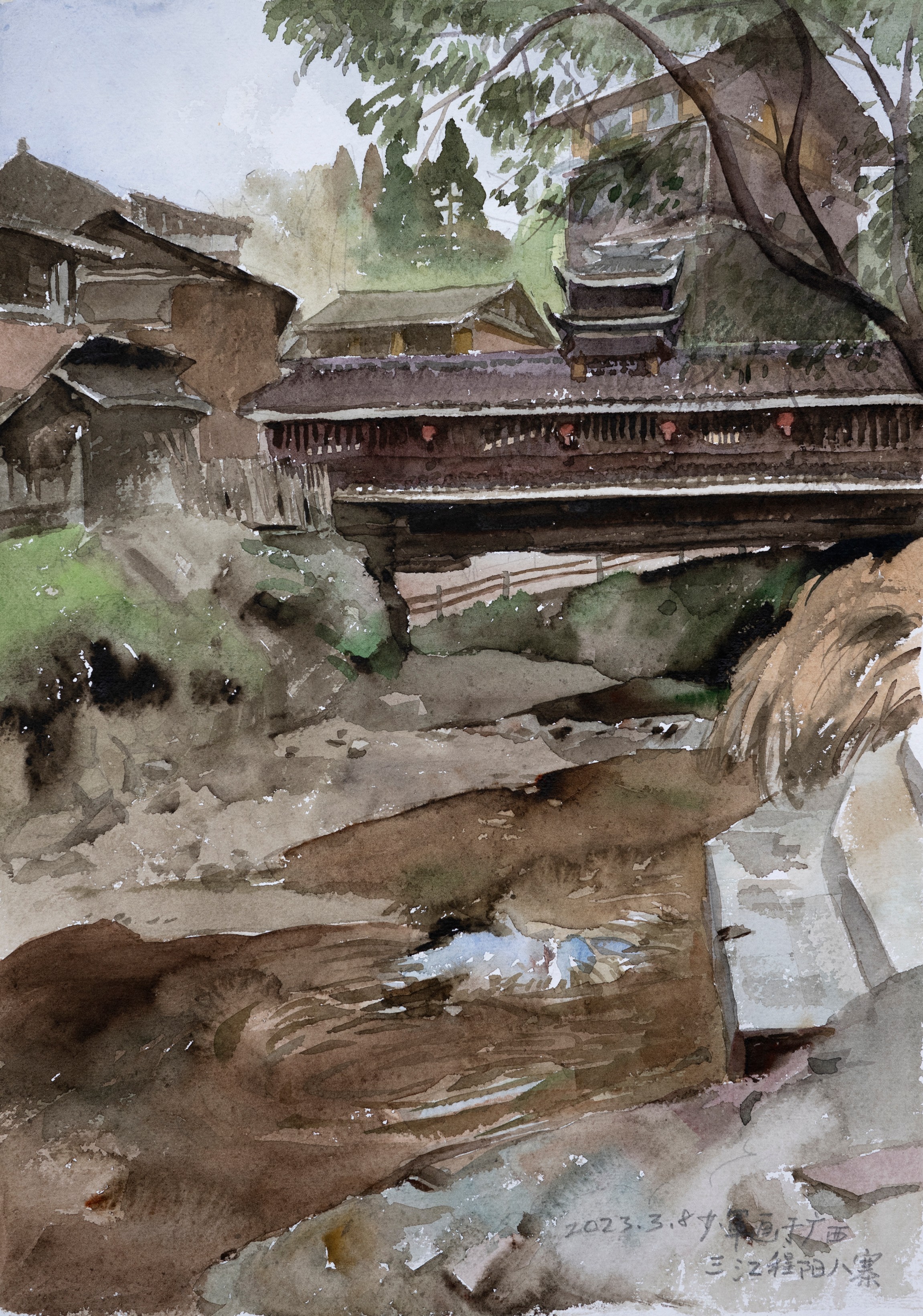 《三江程阳八寨之马鞍寨风雨桥》 41x29cm