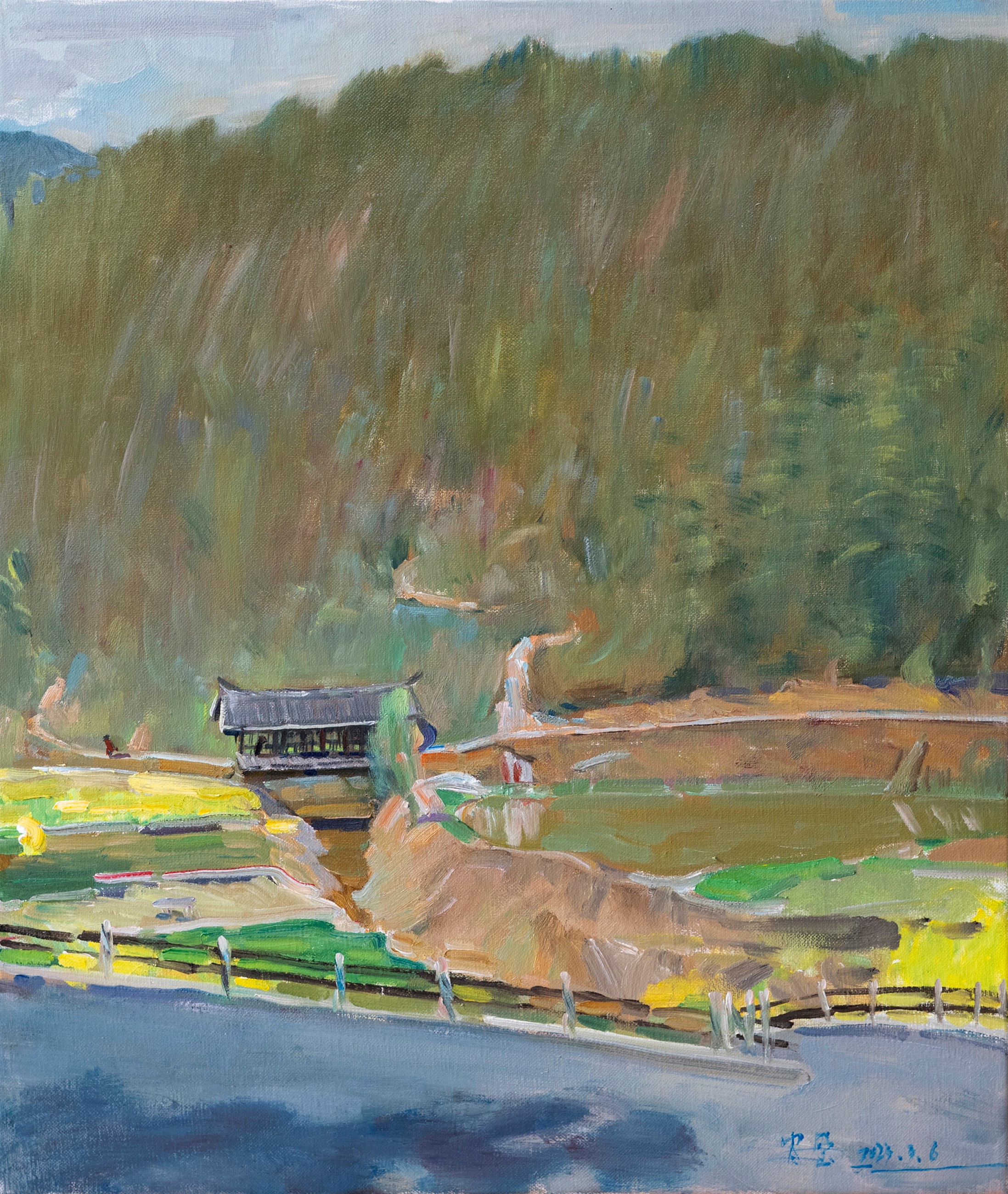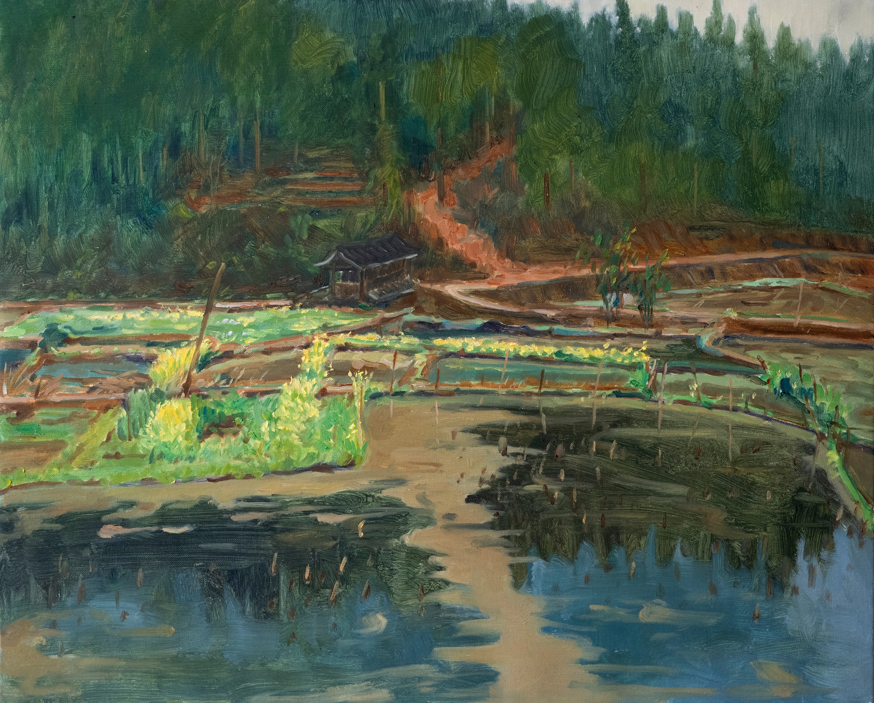 渔塘边的油菜花》 60x70cm