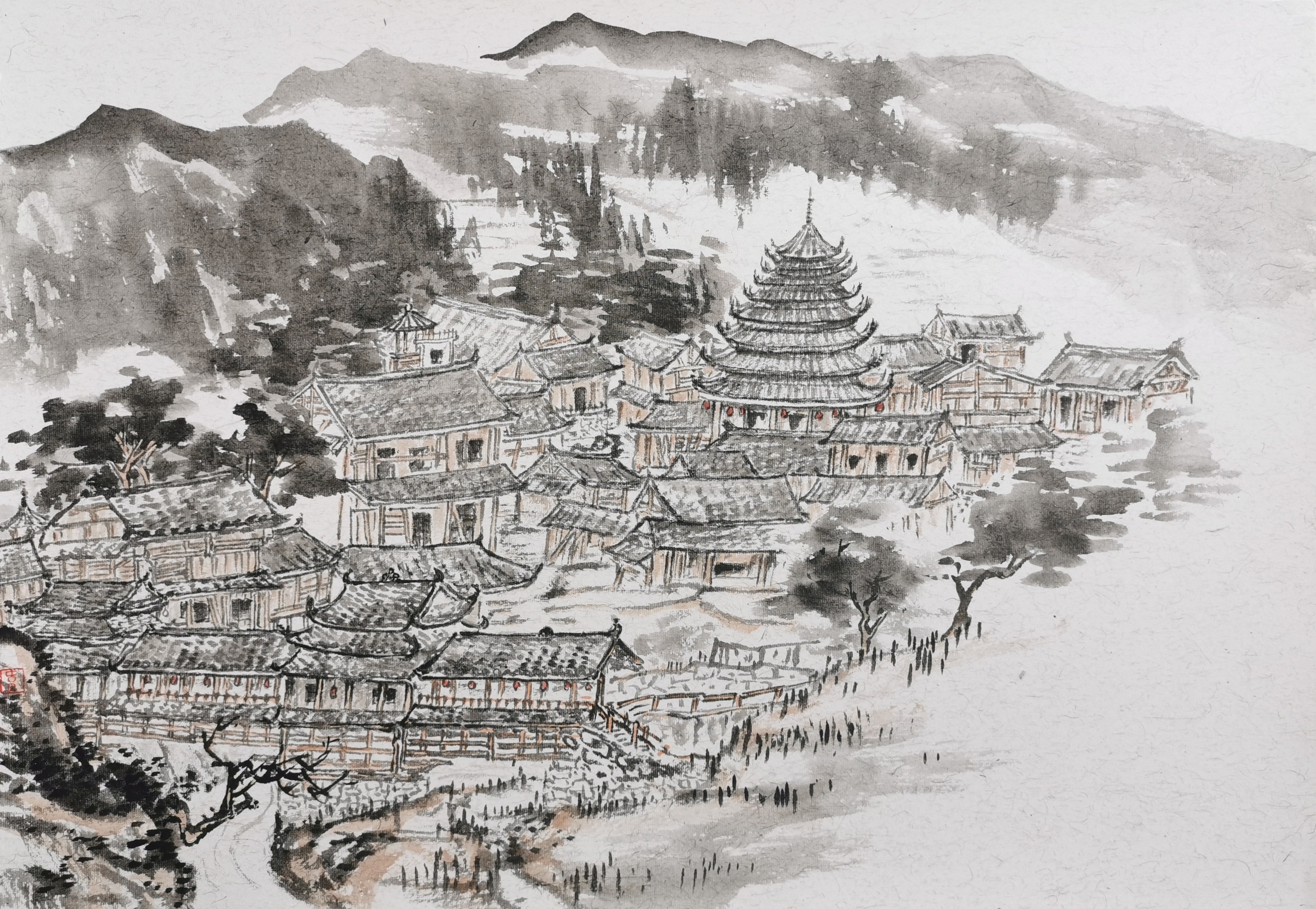 《三江程阳八寨之岩寨》 41×29cm