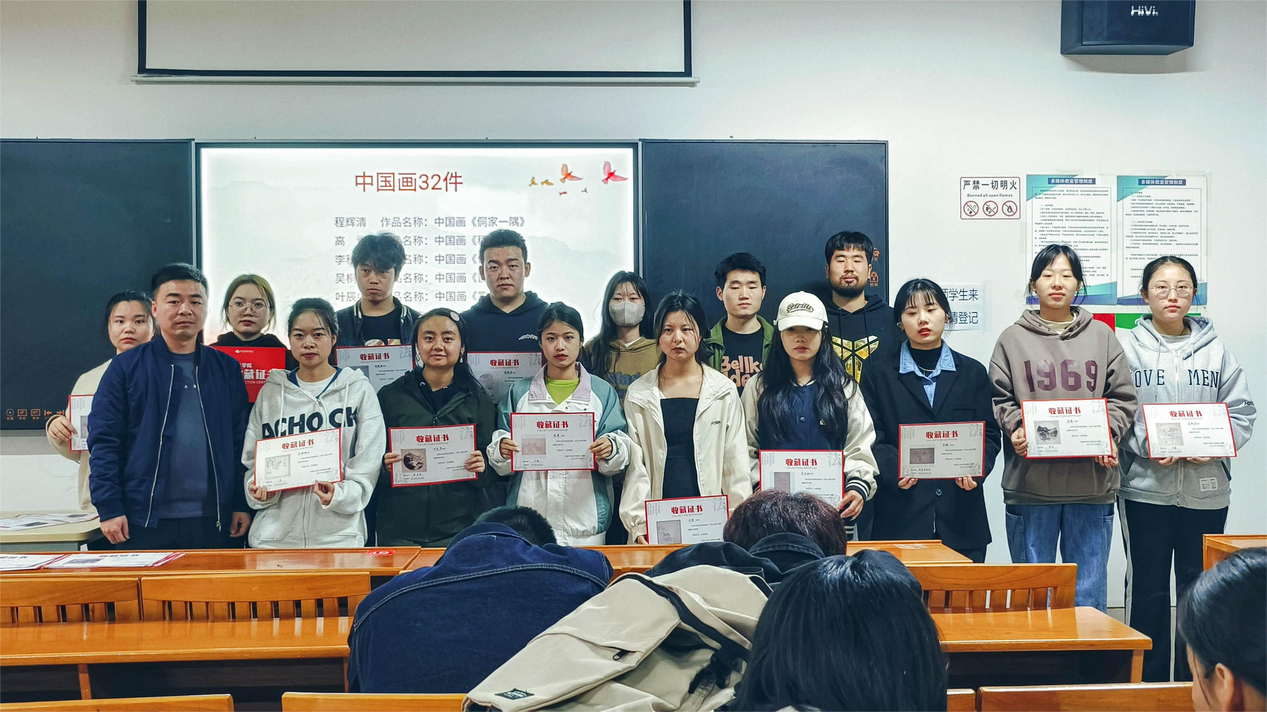 本次写生课程,由校内外专家、教授与专业教师共同评审,共选出优秀学生作品86幅,涉及绘画专业油画、中国画、水彩各专业方向。本次获奖学生共72名,其中油画类42件中国画类32件水彩类12件颁奖仪式邀请与会嘉宾颁奖,获奖同学走上领奖台,领取通过他们积极努力,刻苦钻研,深入创作所取得的荣誉与收获。