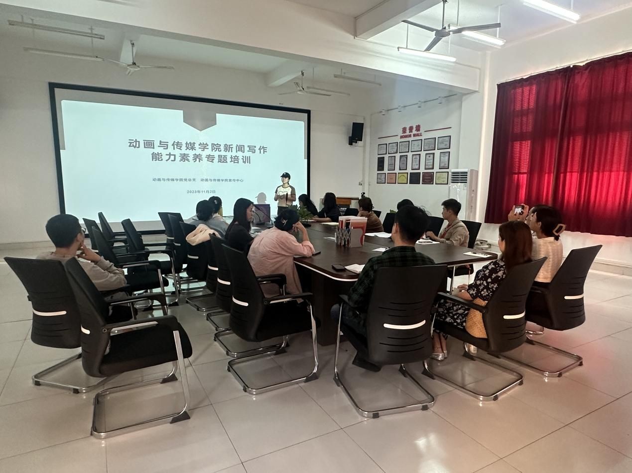 为推动动画与传媒学院新闻宣传队伍建设,适应新形势、讲好新故事,提升学院新闻宣传队伍的专业水平和整体素养,促进学院宣传工作再上新台阶。11月2日,动画与传媒学院组织开展新闻能力素养专题培训。学院党总支书记张帆、各党支部宣传委员、各部门通讯员参加培训,培训由学院宣传中心龙盈迎主持。