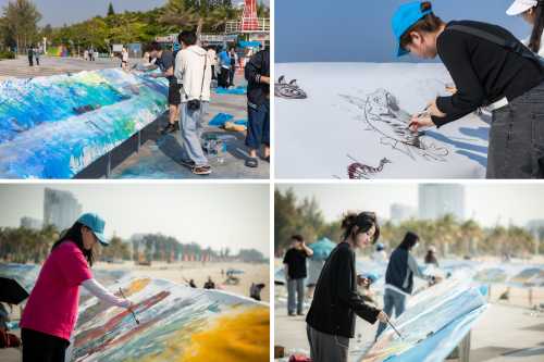 2023年11月28日,为深入学习贯彻习近平文化思想和党的二十大精神,大力实施文化强市战略,加快“文化北海”建设,推动北海文化繁荣发展,积极配合市委市政府2023年“文化北海”建设活动周,由我校美术学院常务副院长龚为领队、党总支副书记鲁明阳为副领队,共组织426名绘画专业学生和15名管理教师参加“十里银滩千人共绘”现场美术创作活动。