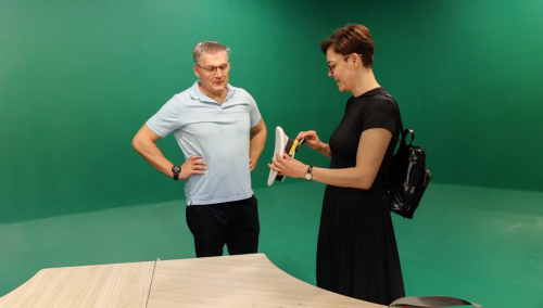 在演播厅,Norbert和Erika教授观看了由动画与传媒学院制作的我校宣传片,对我校的文化和风貌表示了浓厚的兴趣。他们表示,会将这部宣传片带回匈牙利,向未曾到过中国的朋友们展示中国的不同风土人情,促进中匈两国文化的交流与理解。