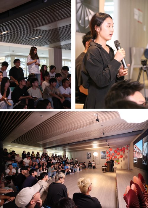 在课堂的最后一刻钟,同学们积极的对张云老师提出心中的问题,例如:张云老师平时灵感匮乏的时候应该怎样去寻找灵感;张云老师在成立团队的时候是先成立了团队,还是在路上寻找志同道合的伙伴;近年来大环境对于环艺专业的同学不是特别的友好,作为环艺专业的