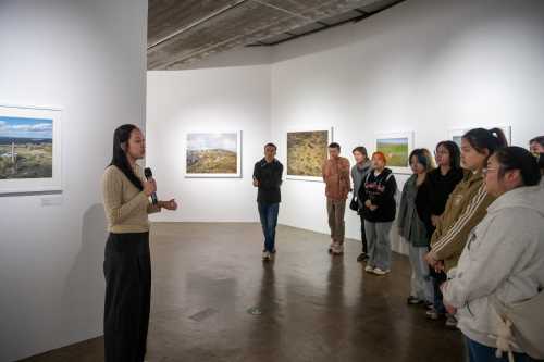 在展场内,学生们还与展览策展人进行了面对面交流,就艺术家的器材选择、创作理念等方面进行了深入交流学习。