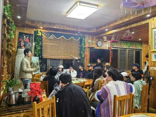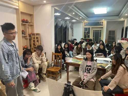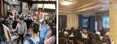 写生过程中陈政军教授与龙义敏教授为方便学生最直观、最快速地了解自己所在专业的基本特性,进行了写生示范与点评,并分别针对绘画和美术学专业开展了《人文关怀·与时俱进·实验创新—绘画艺术创作之我见》《创作表现(画面结构、形的变化)》讲座,学生反映热烈,纷纷表示收获颇丰。除两位教授外,学院自有教师也分别对任教班级进行了写生示范与作品点评。学习之外,师生们一起参加了当地的百家宴活动。在教授和自有教师的通力合作下,学生们的写生实践充实而有趣。