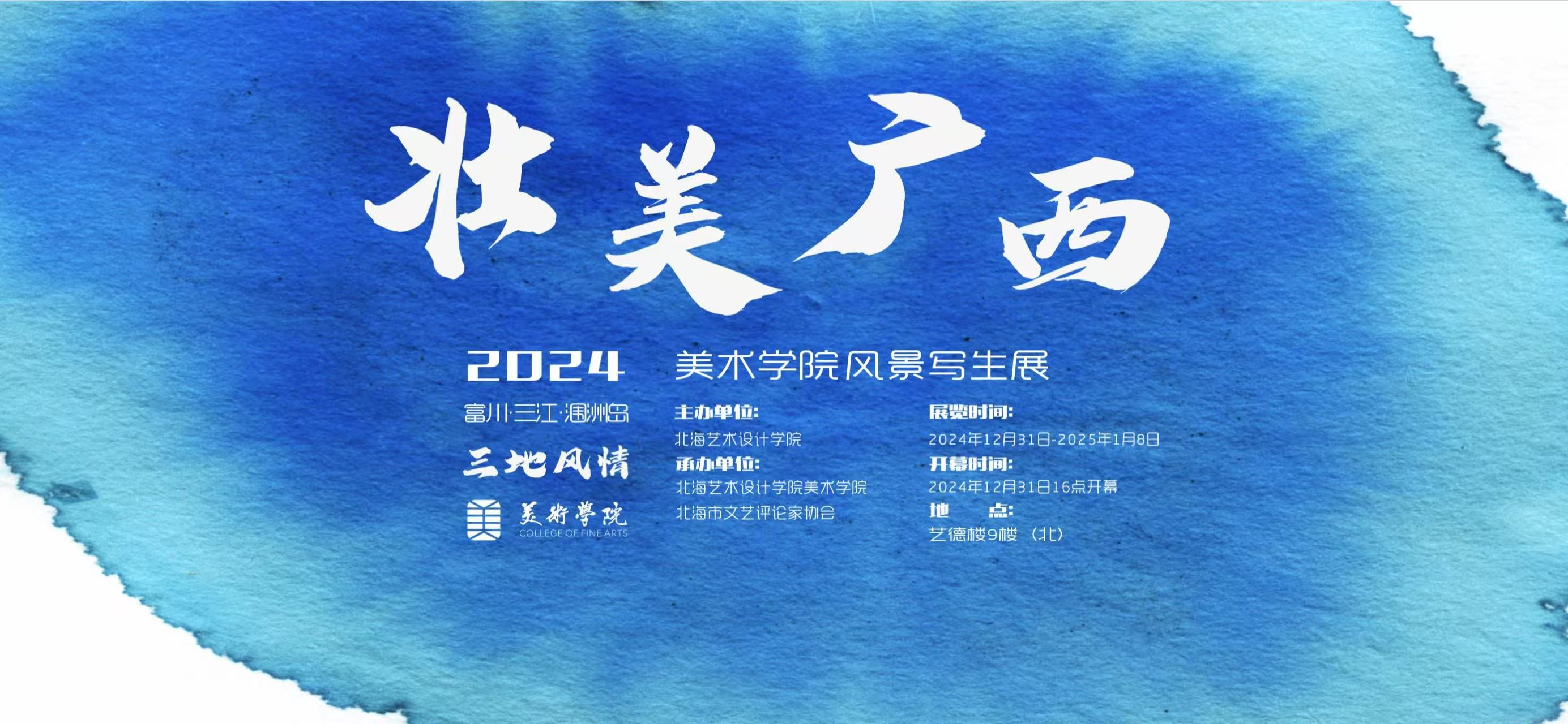 12月31日下午16时,北海艺术设计学院“壮美广西·三地风情——美术学院2024风景写生展”在学校展厅9楼(北)隆重开幕。此次展览由北海艺术设计学院主办,美术学院与北海市文艺评论家协会共同承办,旨在展示美术学院师生在贺州富川、三江侗寨、北海涠洲岛写生实践中的优秀成果,进一步推动学院艺术教育的发展