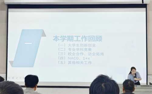 紧接着,建筑与土木工程教研室着重总结专业教学成果,强调建筑学与土木工程专业在学生培养方面成效显著,毕业论文答辩通过率高,专业整体考研与就业成绩优异。