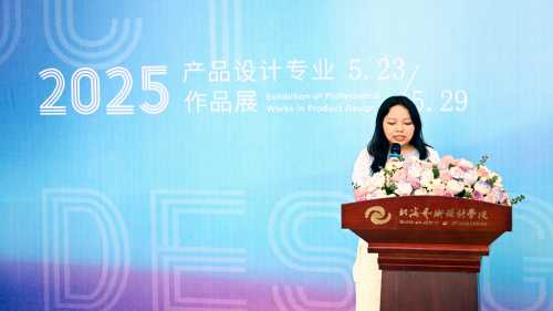 22级学生代表李佳分享了对设计的理解:“设计不仅是创意的表达,更是对生活的回应与关怀。”她回顾了三年来的学习历程,从懵懂到热忱,从课堂理论到实践探索,每一件作品都凝结着灵感与汗水。她特别感谢母校提供的广阔平台和老师的悉心指导,并表示未来将带着这份热爱与责任,继续追求设计的价值。