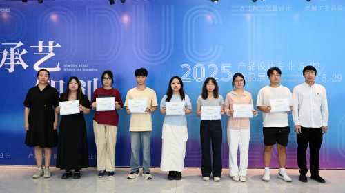 在“承艺·智创”产品设计专业教学成果汇报展上,经评委会评选,12名学生斩获“最佳设计奖”,7名学生获得系部LOGO设计“最佳创意奖”。出席的领导与教师为获奖学生颁发荣誉证书。