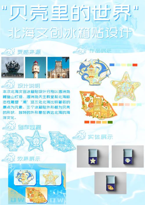 设计艺术学院获奖学生作品以彰显“服务地方”特色为核心,巧妙融入了丰富的海洋文化元素,生动诠释了民族性与地域性的完美融合。深刻展现了艺术性与文化性的和谐统一,以及时代性与经济性的相辅相成。未来,设计艺术学院将继续发挥以文培元、以文化形、以文塑旅的专业教学模式,积极参与服务地方活动,为北海文化建设贡献更多力量。