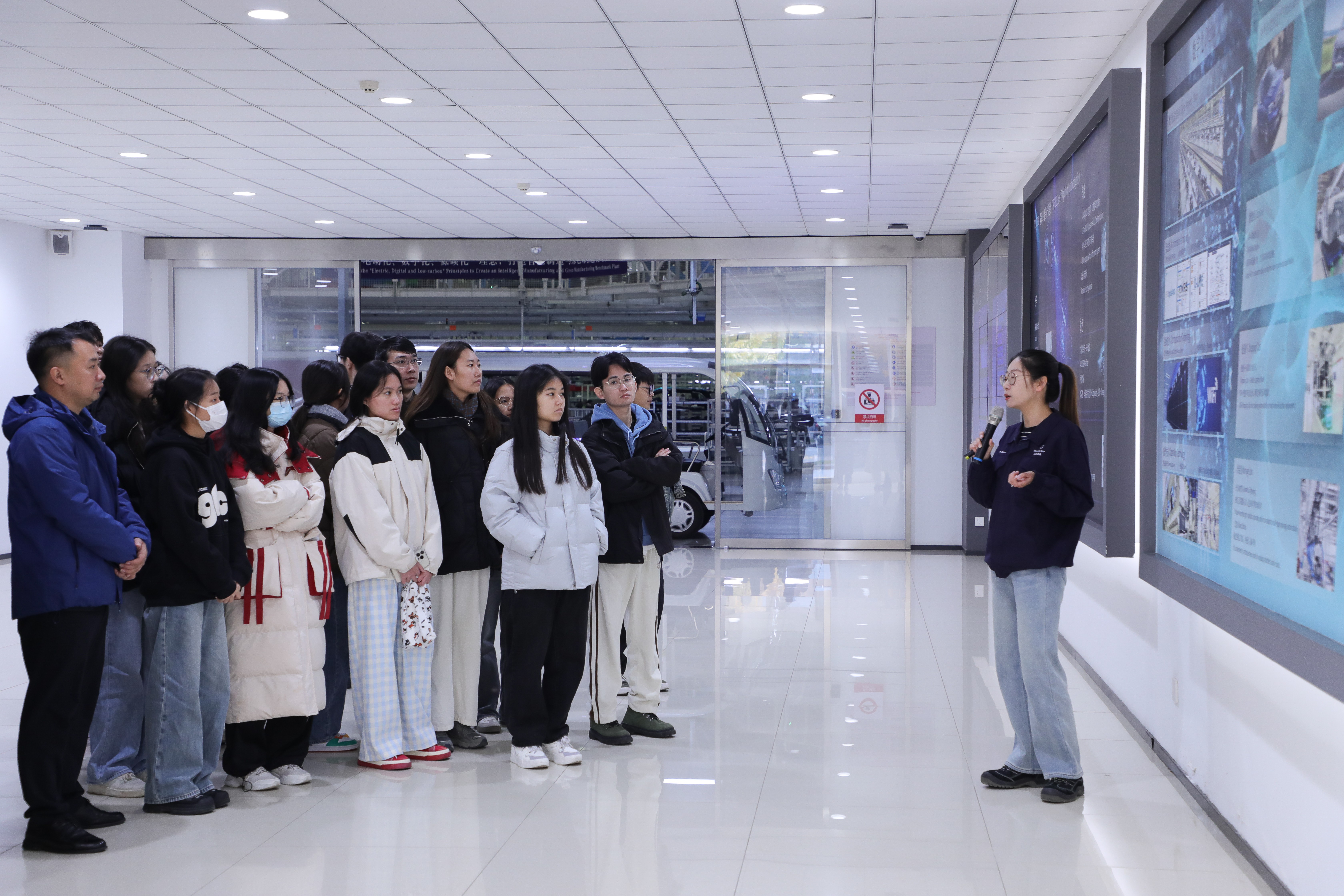随后,师生们参观了奔驰的总装车间。在这里,学生们亲眼见识了现代化的汽车生产流程,包括智能装配线、配餐车、合装线的高效作业,尤其是在智能机器人检验、无纸化车间管理等环节的应用,充分展示了智能制造与精细化管理的结合。这一过程,都让学生们直观感受到了当今汽车制造业的前沿技术与智能化水平。本次实地参观为学生们提供了难得的学习机会,不仅加深了他们对产品设计与工程实现的理解,也让他们看到了设计与技术在现代制造业中的深度融合。