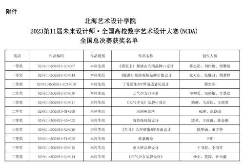 未来设计师·全国高校数字艺术设计大赛(NCDA)国赛获奖名单