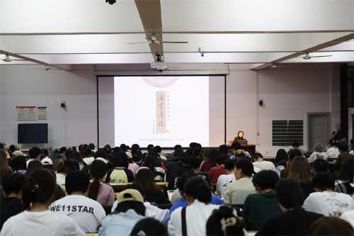 讲座伊始,阎炳武教授用专业性语言介绍邮票中传世的永恒智慧,展现了邮票与先贤思想、时间文化、吉祥文化、古今书画的融合。他表示,从事于邮票设计、雕刻工作,需博采众长、不断吸取历史各朝名家的画法,并运用各种技法来表现画作,才能为邮票注入传统文化非凡魅力。阎炳武教授还进一步引导广大师生对邮票技术发展的深思,促进运用古今中外留下的超前技术,来推动邮票行业不断向前发展。