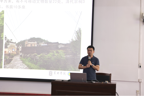 会上,陈建江副院长首先聚焦写生目的地,详细介绍富川秀水状元村、福溪村及湖南上甘棠村的特色资源:从秀水状元村的喀斯特地貌、千年古迹与 “状元文化”,到福溪村的宋代建筑、木雕彩绘,再到上甘棠村的明清古民居与全国文保单位资源,为同学们拓展视野。同时,他分享了多幅优秀写生作品案例,鼓励同学们以 “沉浸式观察” 挖掘创作素材,在实践中锤炼绘画功底与艺术审美。他强调写生不仅是专业能力的提升契机,更是文化感知的重要途径。他希望同学们在写生过程中,主动交流探索,将富川的自然与人文之美转化为独特的艺术表达,同时严格遵守实践纪律,确保活动高效有序。