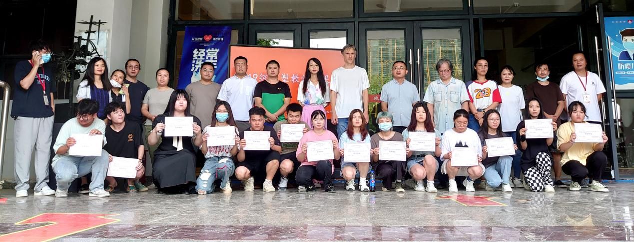 (院领导给学生颁发“优秀作品获”获奖证书现场)