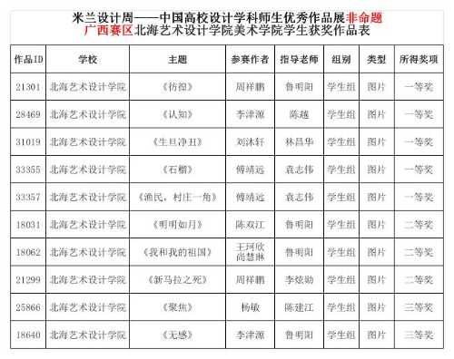 我校美术学院在教学中秉承道德为本,艺术求精的教学理念,坚持以赛促学、以赛促教,注重全方位育人。积极鼓励师生参加各类专业比赛。近日,第六届米兰设计周高校设计展省赛评审工作已全部结束,在全国33个赛区共计3万余件参赛作品中,我校美术学院参展学生作品在广西赛区脱颖而出,共获得一等奖5名,二等奖3名,三等奖2名。