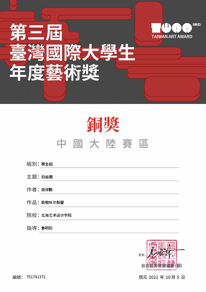作品《致敬哈尔斯曼》荣获铜奖