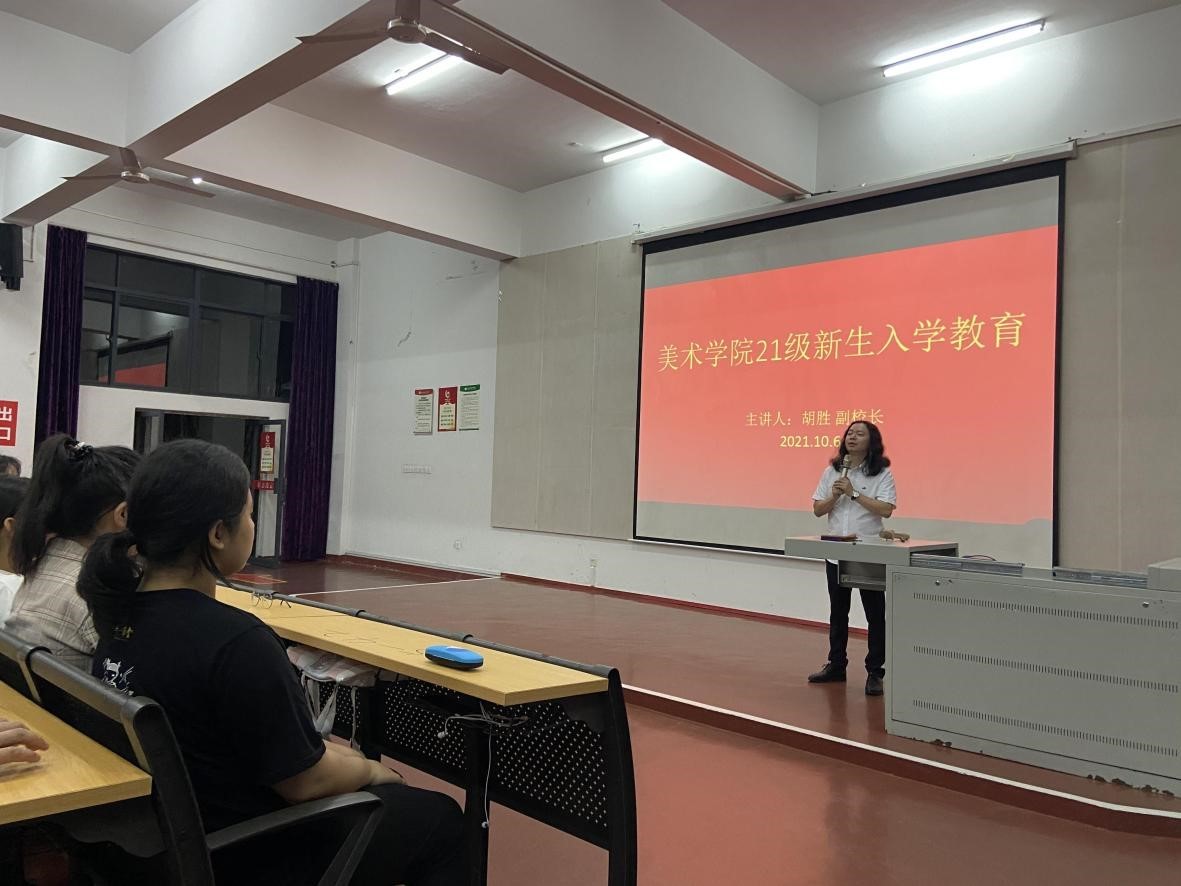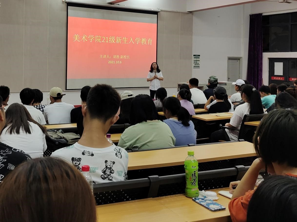 大会开始,胡胜副校长首先对21级新生初来乍到发表了热情、温馨的欢迎辞。他讲到:建校起,我校一直以“道德”为校训,以“德为魂、艺求神”为学院精神,在不断改善办学环境、不断深化课程改革的同时,全面打造师资队伍,全面提高办学接着,胡校长简明扼要地阐述了新生入学教育的重要性。胡校长强调“读万卷书,行万里路”应该都是要在大学的时候来完成,我们北艺文化是一种交流,在你的室友交谈过程中,你可以领略到中国国土地域文化,这对于我们学艺术设计的同学来讲,这是非常宝贵的一种经历,再结合我们北艺一直秉承的传道授业解惑的一个规章制度主题班会,这些都是围绕着人生思想且有高度的。