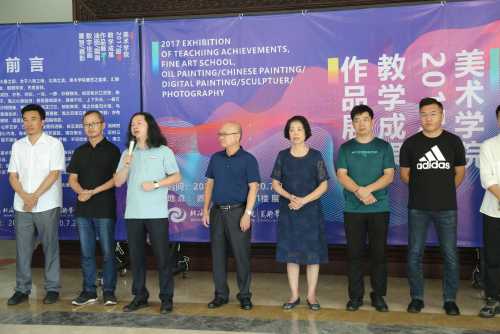 2020年7月25日(星期六)下午四点半,美术学院2017级教学成果展在西校区图书馆一楼展厅隆重开幕,此次展览共展出绘画作品127件、摄影115件、雕塑62件。我校党委书记李高南,副校长张跃、胡胜、彭仁、王斌、邱杰等校领导以及各二级学院相关领导应邀出席开幕仪式。