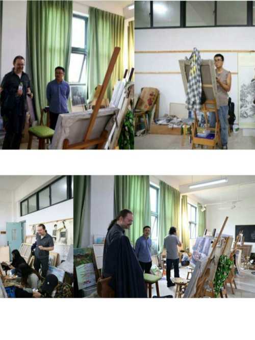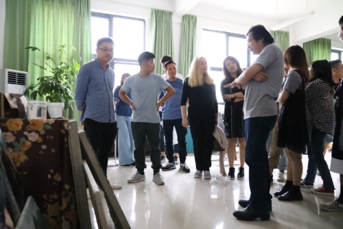 首先在龚为副院长的介绍下,成斌副院长引领领外国艺术家一同参观了绘画专业学生作业展,雕塑专业实训教室与绘画专业实训教室。