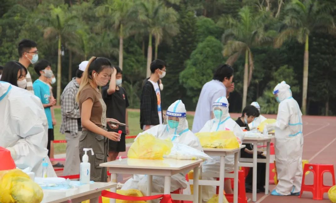 根据北海市疫情防控指挥部安排,我校12月8日开展全体师生员工核酸检测。检测地点设在东校区足球场。 为了更好地开展核酸检测,减少混管异常风险,开展核酸检测时改成扫健康码登记。在核酸检测现场,全体师生员工在现场工作人员的指挥下严格按照排队通道安排间隔一米站队,现场医护人员严格穿戴好防护服,按照规范流程谨慎采样,整体工作井然有序进行,进一步加强我校校园疫情防控安全屏障!(图片来源于学校微信公众号)